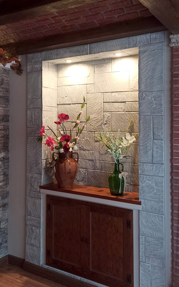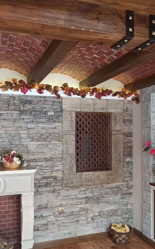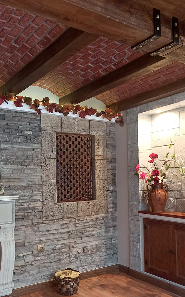 Podemos crear en nuestra vivienda, negocio o espacio público un ambiente rústico, gracias a las múltiples piezas de las que disponemos. Techos, vigas y tablas imitación a madera, paneles imitación a piedra y ladrillo, arcos imitación a ladrillo…
