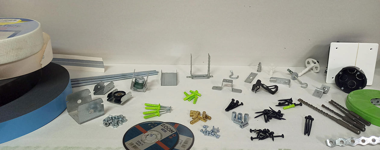 Disponemos de placas, perfiles, tornillería y todo lo necesario para el montaje de techos, tabiques, trasdosados...