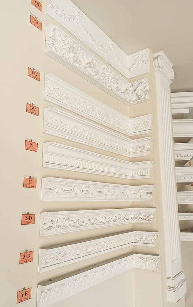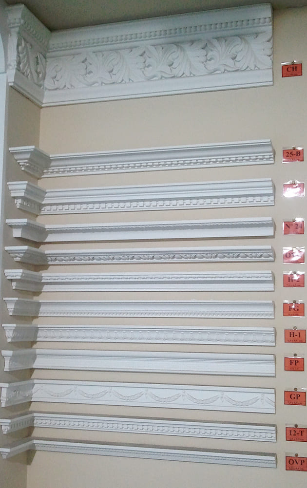 En Escayolas Arias tenemos gran variedad de molduras lisas y decoradas. Posibilidad de reproducir molduras de modelos antiguos o a medida.